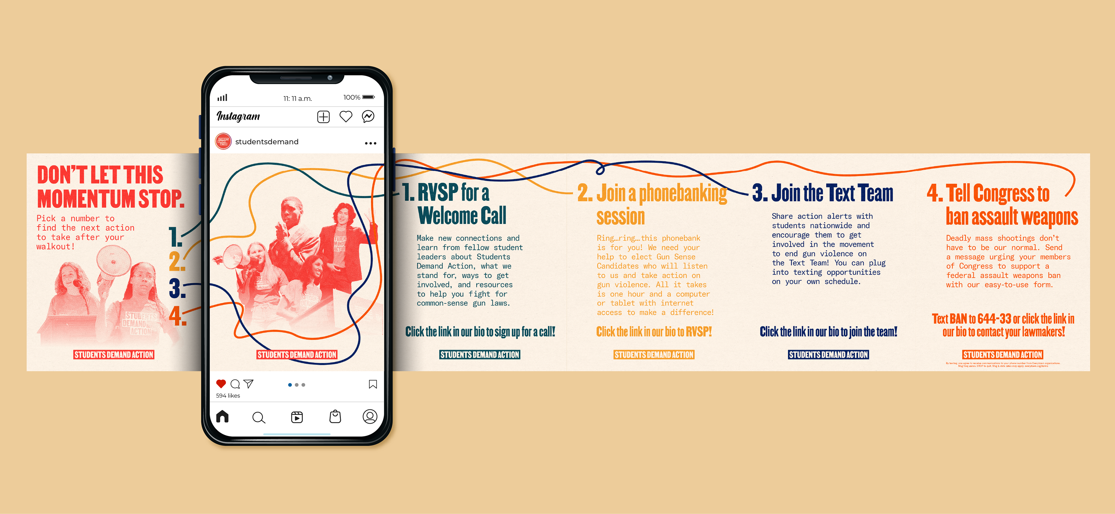 During my internship at Everytown for Gun Safety, I worked within branding across five channels to make unique and eye-catching social graphics. I also worked on creating print materials and graphics for internal channels, merchandise and developing creative direction for new projects.