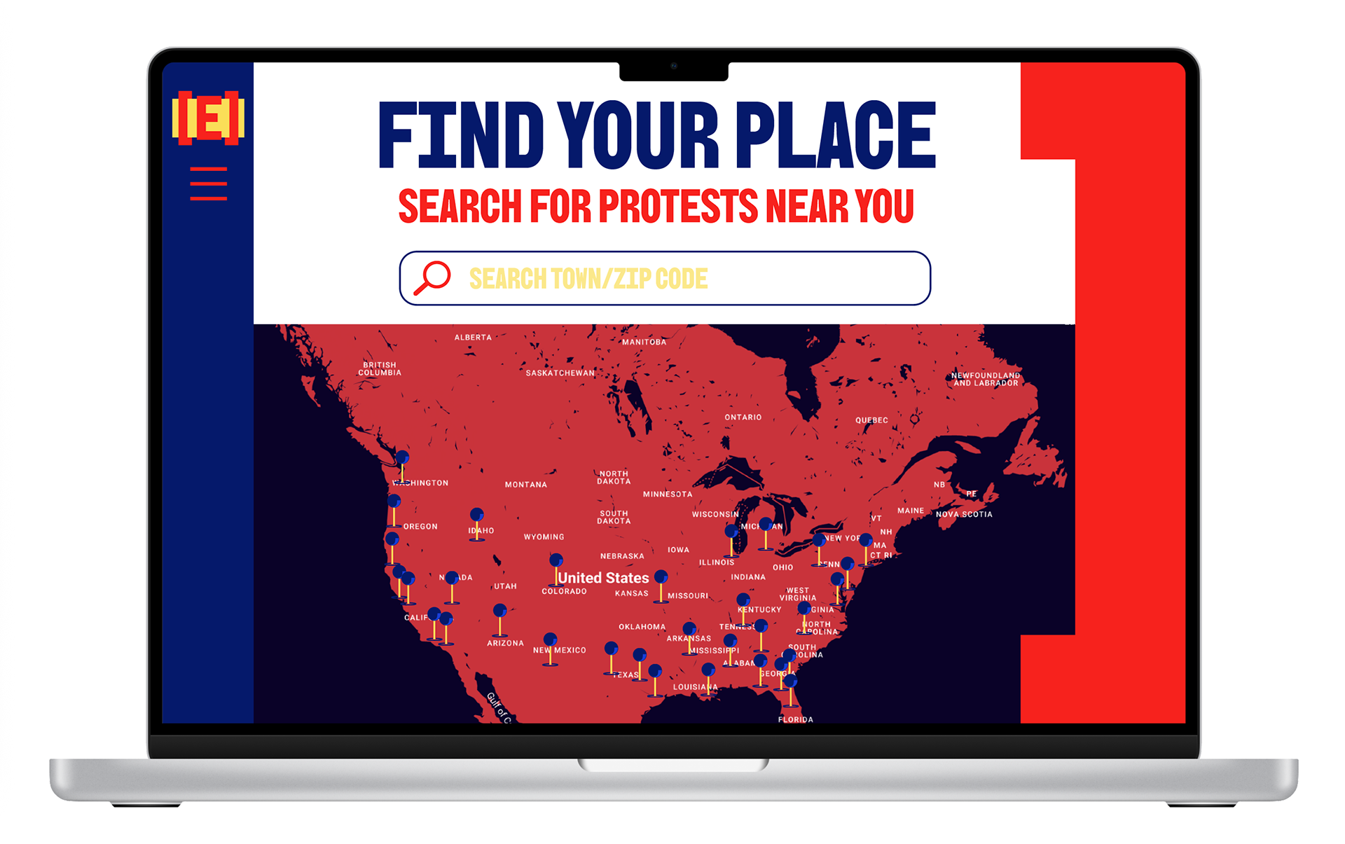 The organization has a website that helps introduce the mission of the movement, share the list of words that were banned by the administration, and call people to action by showing a map of events around the country and offering the opportunity to start your own event. I wanted to make the site easy to interact with by keeping traditional UI but add my own elements of the system to make the experience unique. I also wanted to keep the tone very youthful and cheeky to give the movement a lot of personality. I feel this tone comes out most in the List of Banned words tab.